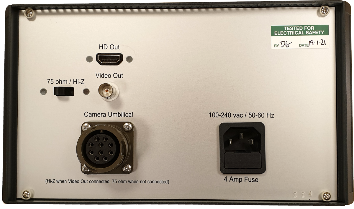 A fixed 18 vdc supply to the camera is controlled by a simple on / off button on the front panel