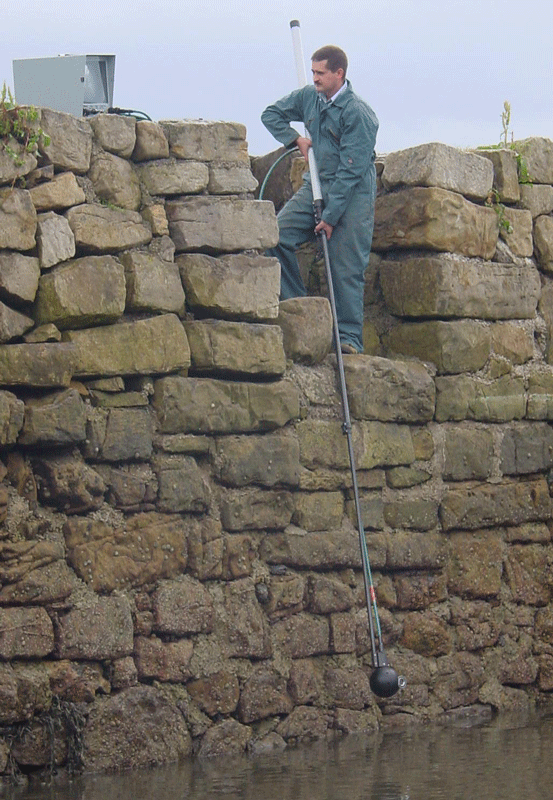 Lightweight Carbon Fibre Telescopic Pole with mounting for Inspection Spyball. The poles extend to 5.4 metres in length and allow the Spyball to be positioned in the water to carry out inspections where suitable access is available such as dock gates, piers etc.